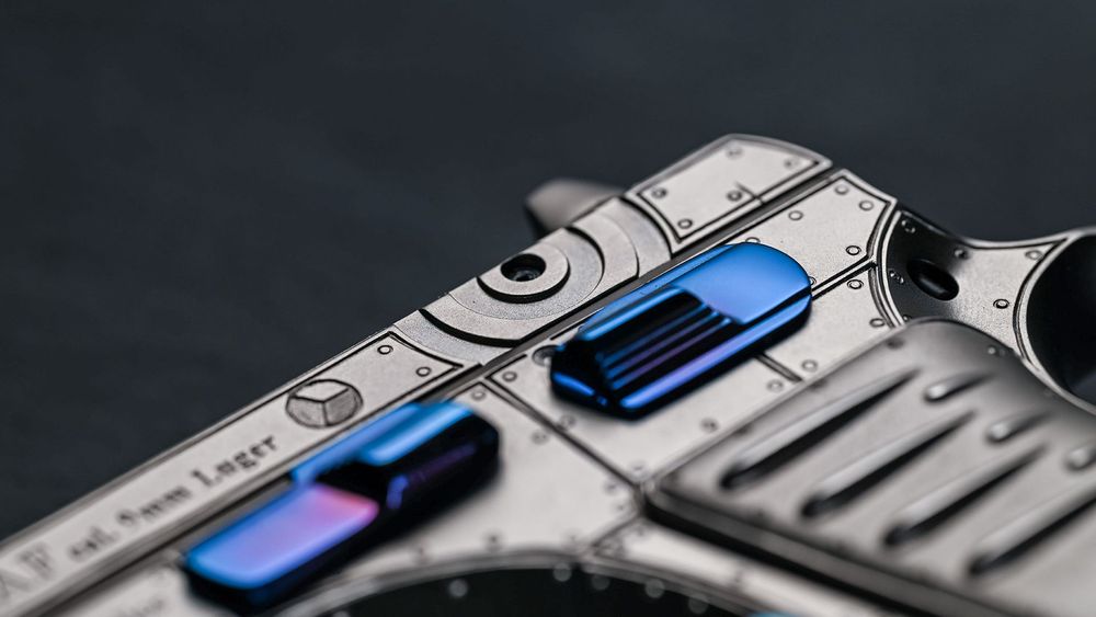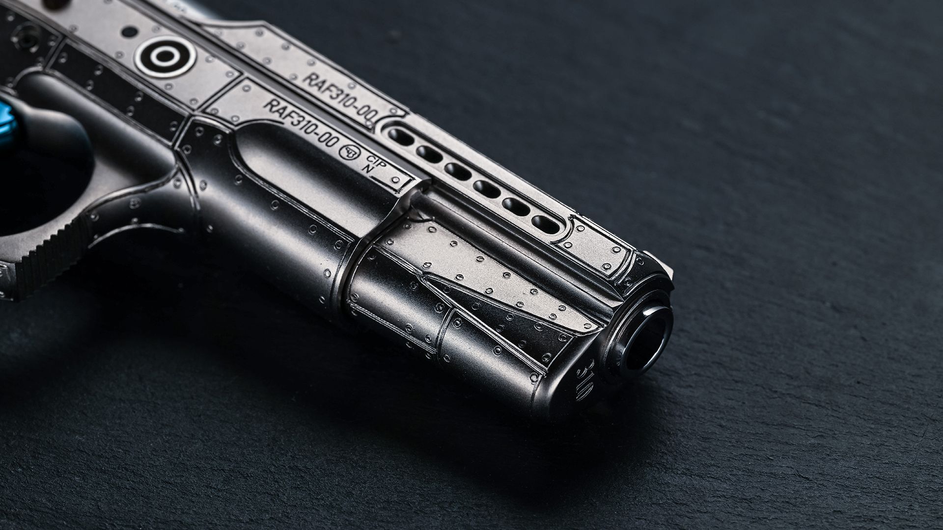 The most dominant feature of the slide, however, is undoubtedly the ports, which are inspired by the exhaust stacks of the Rolls Royce Merlin engine that was the heart of the Spitfire. But watch out! Just like with the Spitfire’s stacks, caution is recommended, as hot gases are also ejected from these ports and the pistol’s barrel.
