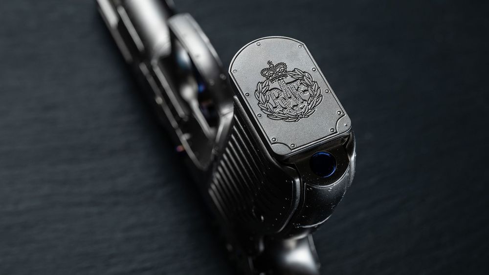 The eye-catching cocking serrations on the slide resemble the circlet in the Royal Air Force roundel.