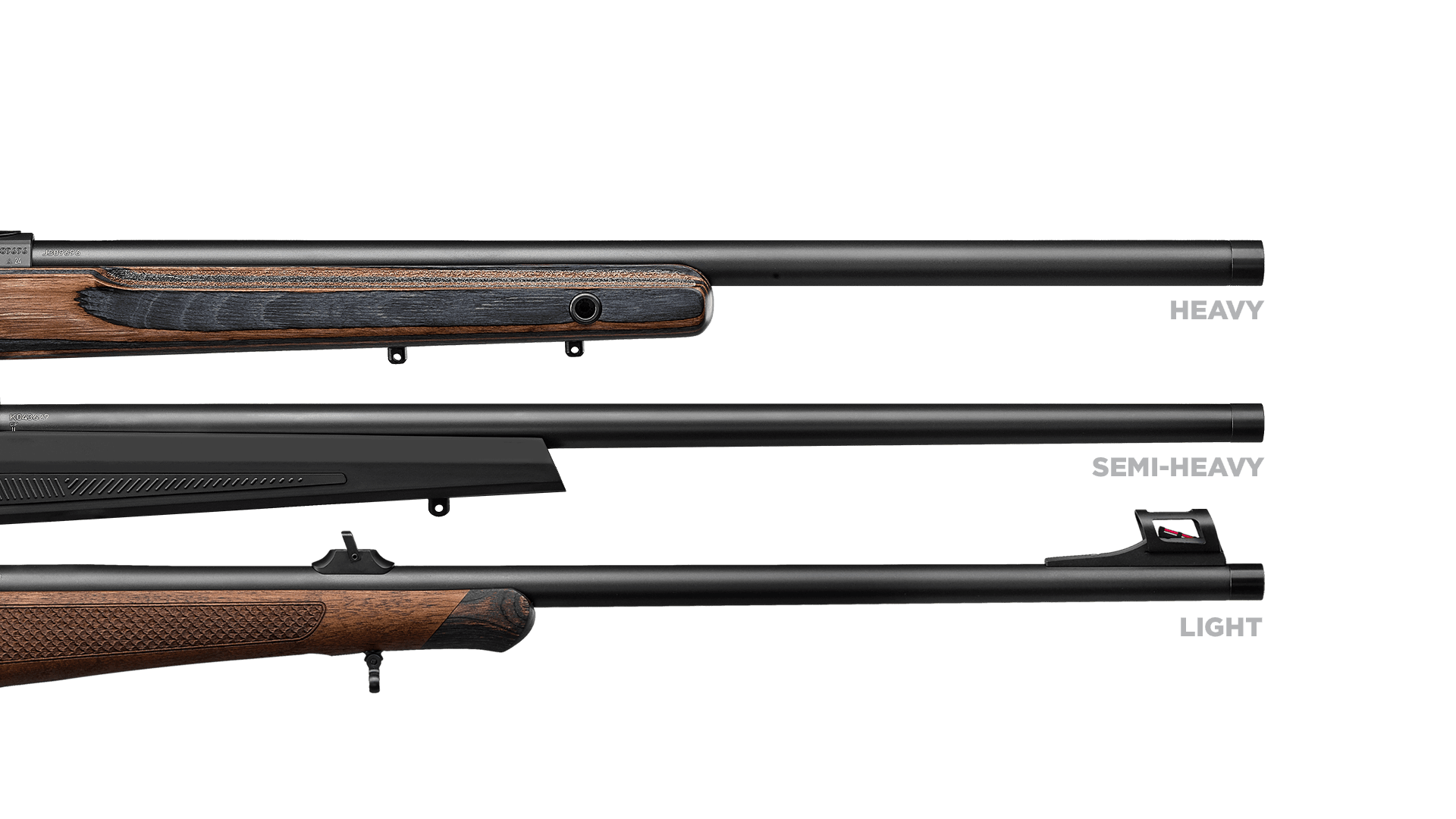 The CZ 600+ is available with three different barrel profiles – light, semi-heavy, and heavy. A light barrel for hunting? We've got it. A heavy barrel for target shooting? No problem. A versatile semi-heavy barrel? Of course!