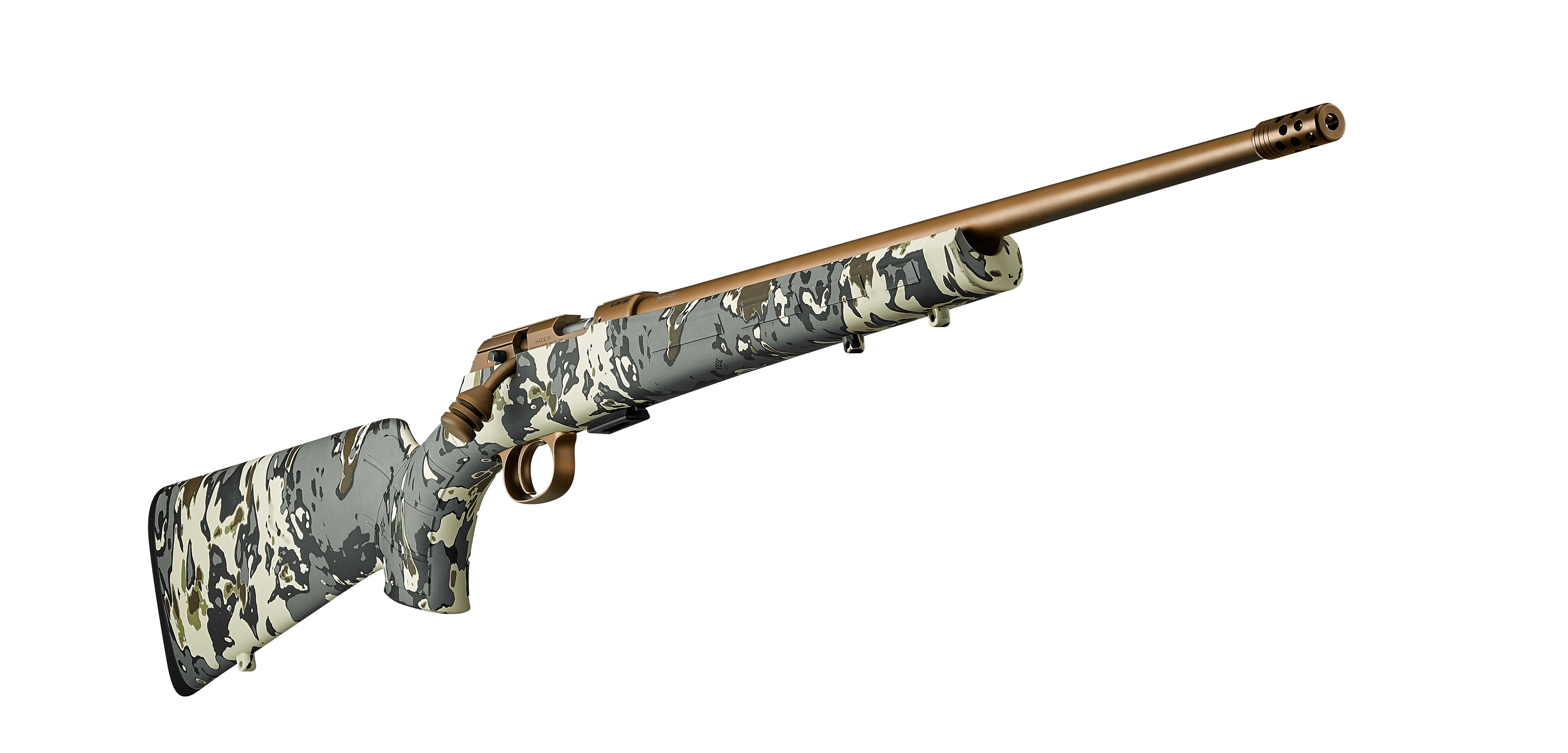 Dvacetipalcová hlaveň s lehkým profilem a všechny kovové části mají matně bronzovou povrchovou úpravu, která dále přispívá k nízké viditelnosti v terénu, zatímco vysoce kvalitní PVD povlak zajišťuje výjimečnou odolnost proti opotřebení a korozi. Namontovaný kompenzátor pomáhá snižovat zvedání hlavně.