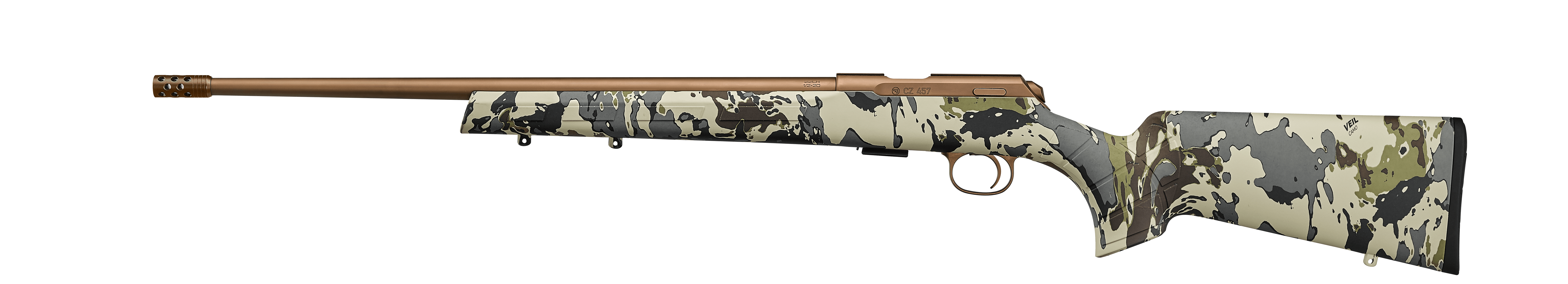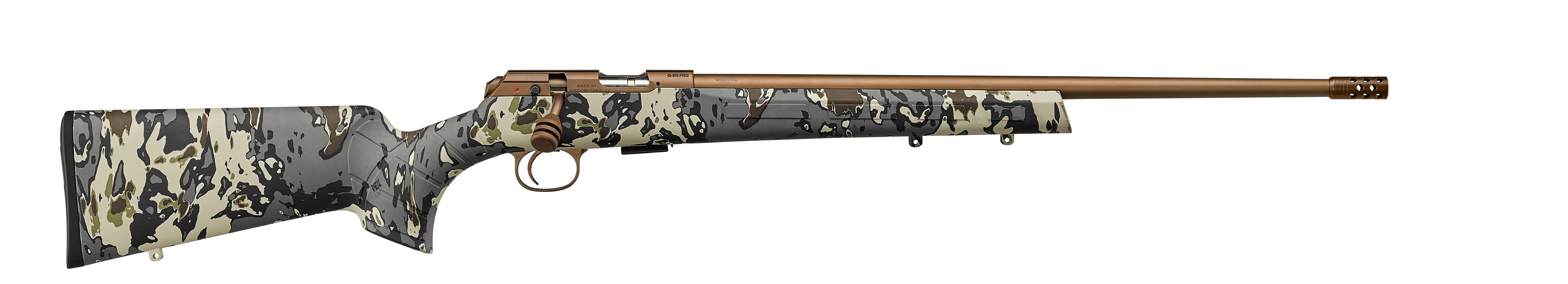 User-swappable barrels and calibersCZ 457 HUNTER VEIL je jedním z nejnovějších modelů malorážek v řadě CZ 457. Díky maskovacímu vzoru na polymerové pažbě s povrchem soft touch dokonale splývá s přírodním prostředím, zaručuje mimořádnou odolnost a poskytuje ochranu proti nepříznivým povětrnostním podmínkám.